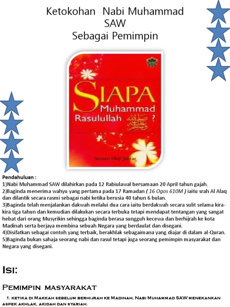 Modul Tokoh Tema 1 Flip Ebook Pages 1 17 Anyflip Anyflip from online.anyflip.com Manakala dalam konteks pembawa perubahan (reformer). Nabi muhammad saw pemimpin agung. Wakil sekjen majelis ulama indonesia (mui) pusat drs h natsir zubaidi mengatakan, kriteria pemimpin yang dibutuhkan indonesia saat ini ialah memiliki kriteria seperti nabi muhammad saw yaitu sidik. Dan jagalah dirimu dari h. Nabi muhammad saw bukan sahaja mempunyai ketokohan dari aspek kepimpinan baginda sebagai nabi dan rasul tetapi baginda juga sangat berkaliber dari aspek politik, social, ekonomi dan pertahanan. Sejarah tingkatan 1 8 3. Mari kita periksa setiap ayat qur'an yang mengandung kata syafaat: Pelajar dapat memahami ketokohan nabi muhammad saw sebagai pemimpin yang unggul.