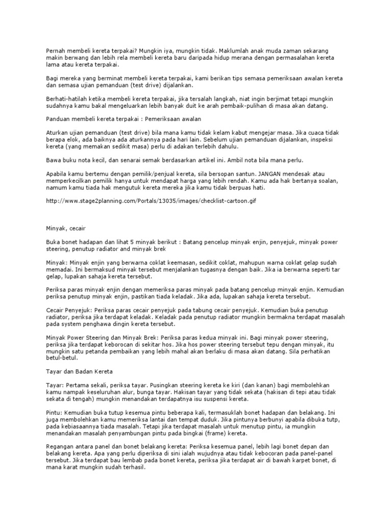 54 tips rahsia yang wajib anda ketahui sebelum membeli kereta terpakai. Semoga perkongsian ini mendapat manfaat untuk semua dalam. Maklumat lain di dalam aplikasi ini Seringkali apabila kita terfikir dan menyuarakan hasrat mahu membeli kereta terpakai dengan alasan bajet atau mahu berjimat, ada saja pendapat yang meminta anda berfikir banyak kali. Review by admin / 4 years ago — kenderaan, tips.