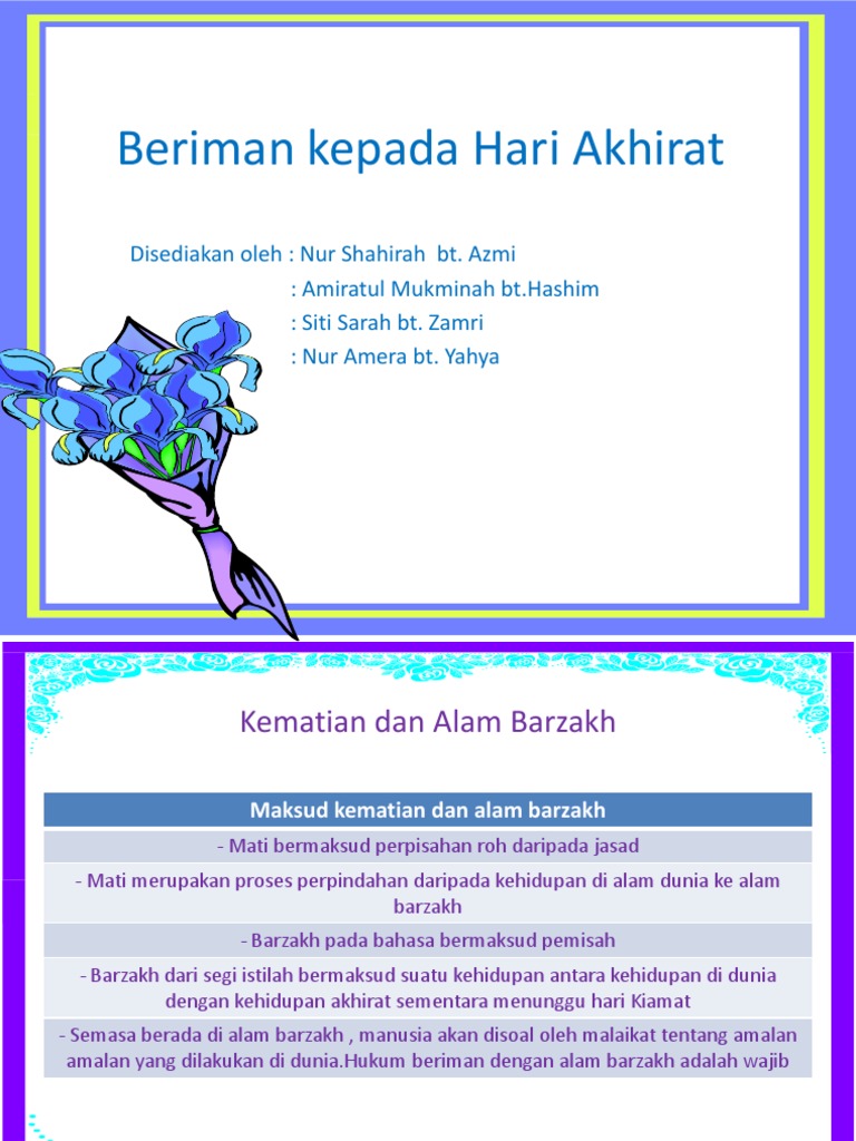 Beriman Kepada Hari Akhirat Part 2 Kviz from az779572.vo.msecnd.net Barzah batas atau perantara antara alam dunia dan alam akhirat. Beriman kepada hari akhir 6. Pada hari kiamat seluruh makhluk ciptaan allah swt. Iman kepada hari akhir itu adalah rukun iman yang kelima. Beriman kepada hari akhirat merupakan keimanan kepada perkara ghaib atau sam'iyyat. Di dalam surga bahkan kenikmatannya belum pernah dibayangkan oleh pikiran, dilihat oleh mata dan didengar oleh kedua. Beriman kepada hari akhir adalah meyakini bahwa hari kiamat atau akhir zaman pasti akan terjadi. Hari akhir atau akhirat merupakan masa yang akan dihadapi seseorang setelah berakhirnya kehidupan di dunia.